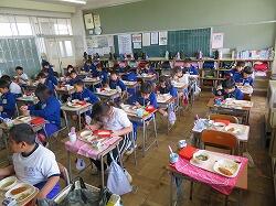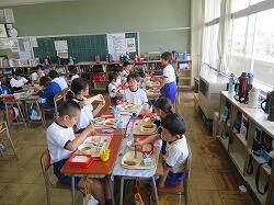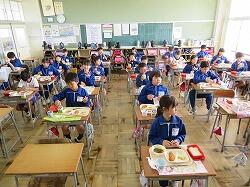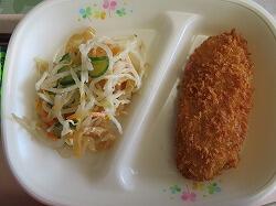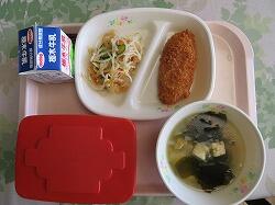 今日の給食は「肉シュウマイ」「もやしと青菜のナムル」「卵とわかめのスープ」の地産地消給食でした。