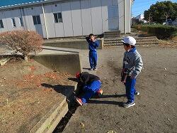 理科で「日なたと日かげの地面の温度」を調べに行きました。
