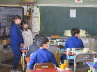今日の給食は「オムレツ」「ごぼうサラダ」「フルーツポンチ」でした。