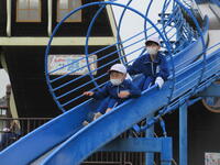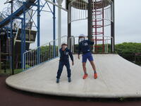 食事後、午後の活動まで時間がありましたので、アスレチック広場で遊びました。