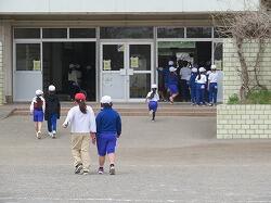 掃除の時間になると、すぐに掃除場所に向かうために昇降口に向かいます。それも、東っ子たちのよいところですね。