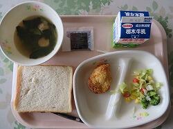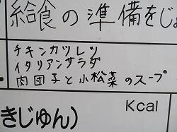 今日の給食は、「チキンカツレツ」「イタリアンサラダ」「肉団子と小松菜のスープ」でした。