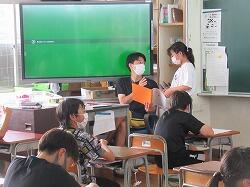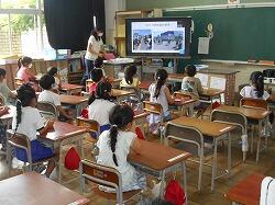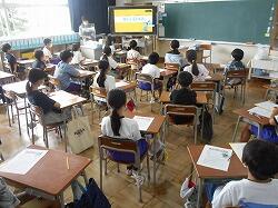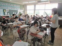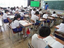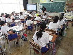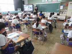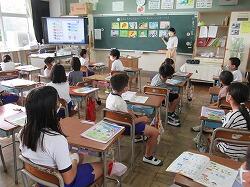 <6年3組> JTEとAETによる外国語の授業におじゃましました。1学期の外国語の授業の反省をしていました。分かりやすい点、難しい点など反省ができたようです。1学期に学習した内容をよく復習して、2学期の修学旅行で実際に使ってみましょう!