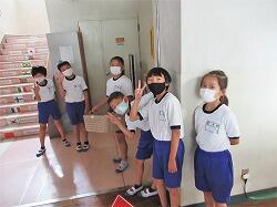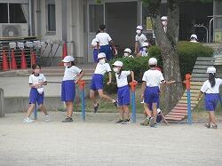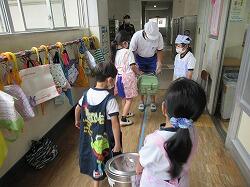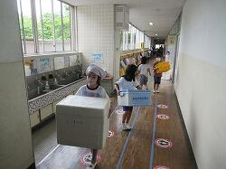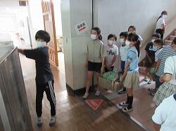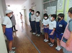 点検業者が体育館に向かうと、体育館から教室に戻る3年1組の子供たちと出会いました。