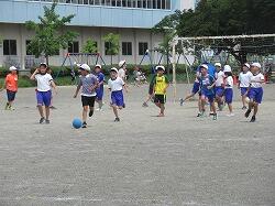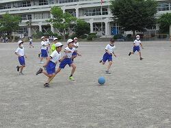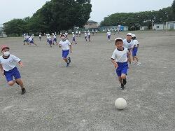 雨が上がると、水たまりが残る校庭で、走り回ったり、ボールを追いかけたりする姿が多く見られました。