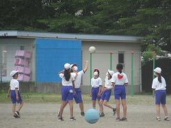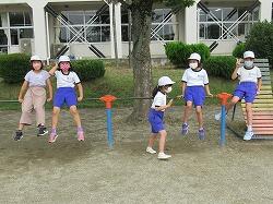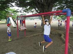 今日の午前中は雨模様でしたが、昼には上がり、校庭で遊べるようになりました。