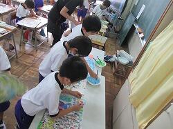 <1年1組> 図工の授業におじゃましました。「くじらぐも」の感想画の色塗りをしていました。クレヨンの色塗りが終わった子は、絵の具の色塗りにチャレンジしていました。鮮やかな色遣いと、丁寧な色塗りで、素敵な感想画ができてきていました。すごいぞ、小さな芸術家たち!