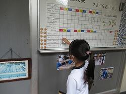 <4年3組> 学級活動の授業におじゃましました。前半は、明日のお楽しみ会のチーム決めでした。後半は、夏休みの生活について、めあてを決めたり、日課表を作成したりしました。楽しいだけでなく、有意義な夏休みにしてほしいと思います。自分自身を一回り成長させてください!