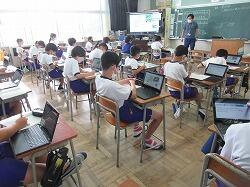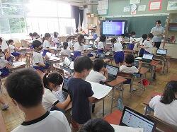 今日まで、子供たちは、インターネットや図書室の本で生きものについて調べたり、調べたことをアプリのシートに入力したり、写真を撮って取り込んだり、クイズを作ったりしていました。タブレットを使った発表の仕方も練習していました。