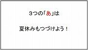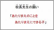 「3つのあ」「早寝・早起き・朝ご飯」も頑張ってほしいと思います。