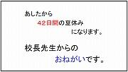 来週の今日は、もう夏休みです。あと3日、元気の登校してください。