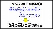 夏休みを楽しく過ごすためには、やはり安全第一です。きまりを守って、安全に、そして健康に過ごしてほしいと思います。