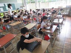 <3年1組> 3年生も夏休みにタブレット端末を持ち帰ります。今日は、ログインパスワードの変更を行いました。何回か入力を繰り返して、覚えてしまった子がたくさんいました。本当に子供たちの吸収力は素晴らしいです!夏休みも使用のきまりを守って、活用してほしいと思います。