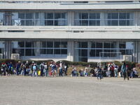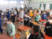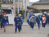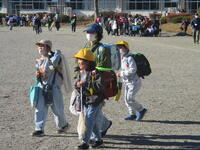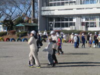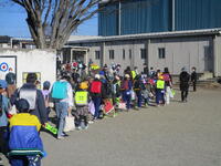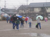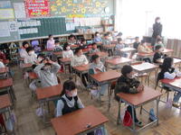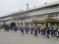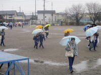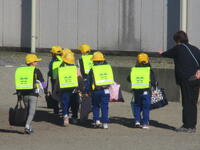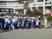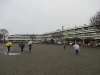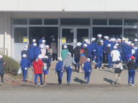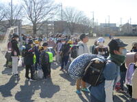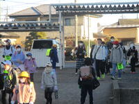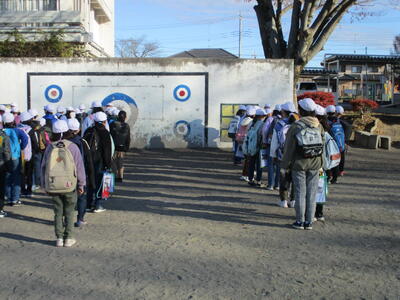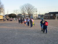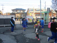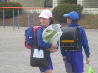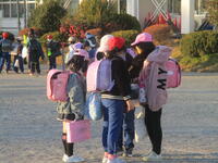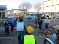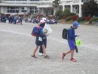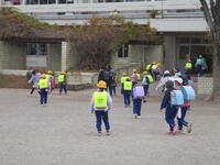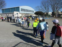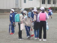 登下校班ごとに整列して、登下校班の班長が「気をつけて帰りましょう!さようなら!」と声を掛けると、東っ子たちは一斉に「さようなら!」と大きな声であいさつをして、きちんと登下校班ごとに並んで下校していきました。