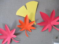 紅葉した葉や、もみじやイチョウの葉が巧に表現されていてすばらしいです。