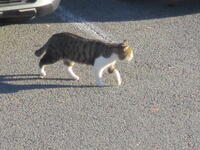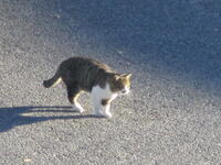 東っ子たちが元気にあいさつしながら登校する時間帯は人も多く、活気にあふれていますが、東っ子たちや登校指導の先生方が校舎に入った後の少し静かになった駐車場には、東っ子たちと一緒に登校してきたのか、ねこが一匹、日当たりのよいところを選んで座っていました。