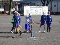 2校時目には3年生の東っ子たちが、青空のもとで体育の授業をしていました。ベースボール型ゲームの「ティーボール」です。