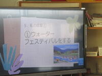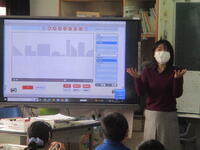 電子黒板に画像が出たり歌詞が出たりして、一緒に歌うこともできます。