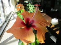そのような中で校長室の窓際では、今日もハイビスカスが大きな花を咲かせています。