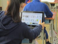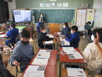 どちらのクラスも国語の授業でした。電子黒板やタブレット、プリントなどを使って授業が進められていました。