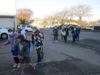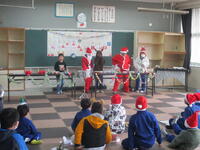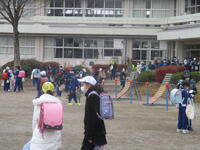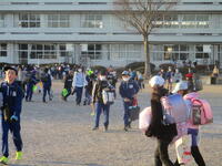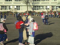 授業や終業式が終わって「クリスマス給食」を食べて、東っ子たちが2学期の最終日の学習や諸活動を終えて元気に「さようなら!」とあいさつしながら登下校班ごとに下校していきます。