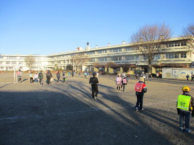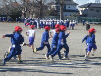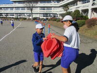 東っ子たちは準備運動をした後で、学年ごとに決められたコースをBGMのリズムに乗りながら一生懸命に走っていました。