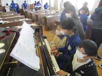 今日の5校時目には、第1音楽室で6年2組が、第2音楽室では4年2組が音楽の授業をしていました。