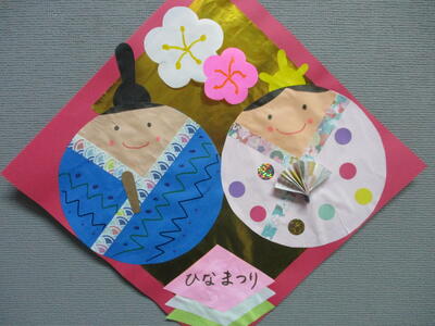3月に入り、「ひな祭り」のこの時期に、華やかな春の訪れが感じられるようなとてもすばらしい掲示物になっています。