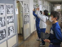 校舎のいろいろな場所には、卒業を祝福する掲示物や飾りつけなどが見られます。