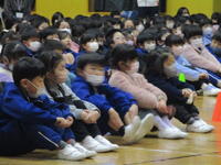 4・5年生と6年生の東っ子たちは、先生方から卒業式についての話を真剣に聞いて、一生懸命に練習に取り組んでいました。