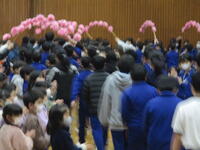 今日は1年生から3年生までの東っ子たちは、卒業式の代わりに下校する前に「お別れ会」を実施しました。
