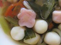 紅白すまし汁には、梅の花の形をしたかまぼこも入っていました。