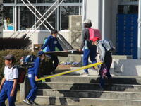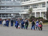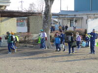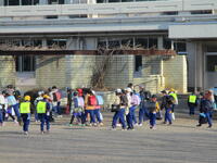 今日一日の学習や諸活動を終えて、東っ子たちが登下校班ごとに下校していきました。