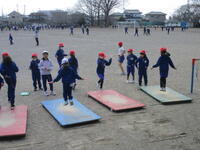 今日の4校時目には、1年生、3年生、5年生が外に出て体育で体を動かしていました。