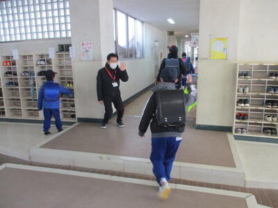 今日も東っ子たちは元気に「おはようございます!」とあいさつしながら登校してきました。今日は気温が上がって暖かくなりそうです。