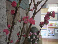 真岡東小学校の職員玄関には、今は桃の花も飾られています。