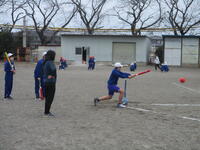 < 6年2組 > 体育の授業で、校庭で楽しそうに歓声を上げながら、ティーボールで一生懸命に打ったり、投げたり、走ったりしていました。