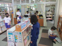 図書室では図書委員会の東っ子が、曜日ごとに交代でしっかりと活動しています。
