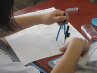 算数専科の先生と学習支援の先生、担任の先生の3人で授業をしていました。今日の算数は「対称なデザイン」という学習内容で、東っ子たちはコンパスや定規を使って線対称や点対称の作図に一生懸命に取り組んでいました。