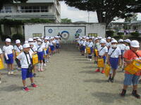 昨日の「町探検」とコースを替えて、今日も2年生の東っ子たちは、とても楽しそうな笑顔で元気に「行ってきまーす」とあいさつしながら、クラスごとに「町探検」に出かけていきました。