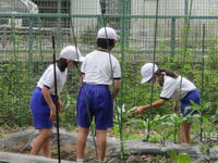 先生と一緒に遊んでいたり、学校農園を見に行ったり、東っ子たちは外に出て一人一人がそれぞれ思い思いに過ごしています。