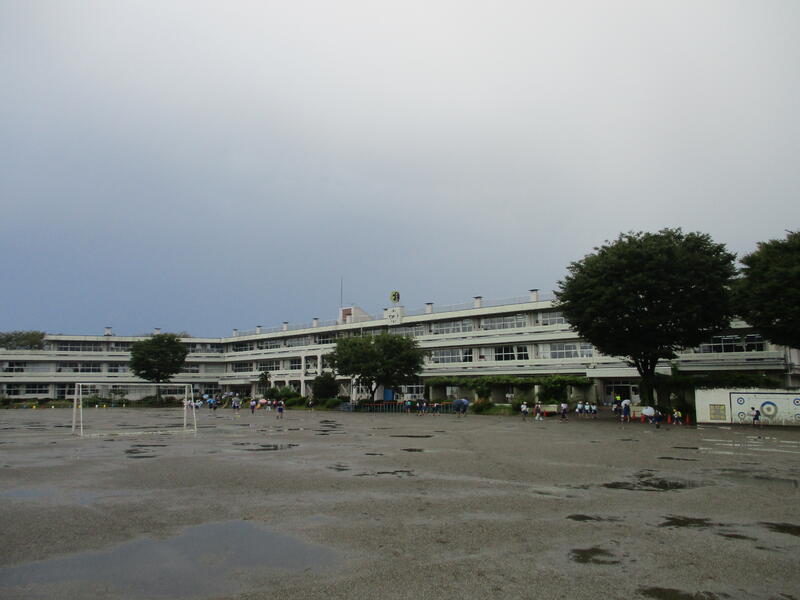 昨日の夕方は雷で雨がけっこう降りました。校庭には水たまりがたくさんできています。