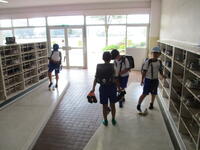 今日は朝早くはきれいな青空でしたが、登校時間ごろからは少し雲が出てきました。今朝は風が涼しくて、半袖よりも長袖の方がよいぐらいの気温になりました。