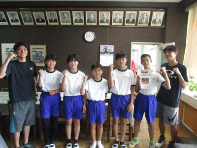 栃木県小学校陸上競技記録会に出場してがんばった東っ子たちが、監督の先生と一緒に今日の昼休みに校長室に来てくれました。