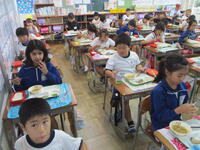 4年生の東っ子たちは[「今日の給食もおいしいです!」と言いながら、今日もおいしそうに給食を食べていました。