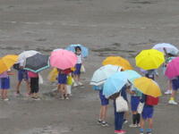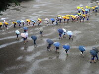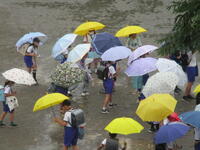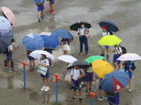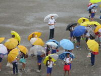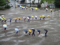 雨の中での下校となりましたので、校舎の3階から見ると、カラフルな色とりどりの傘の花が咲いたようにも見えます。