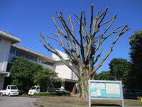 正面玄関前にある"大欅の木"は枝下ろしをして青空をバックにすっきりとした姿を見せています。