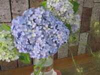 真岡東小学校の玄関にはきょうもきれいな紫陽花の花が飾られています。