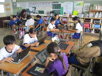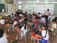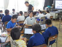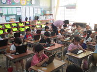 1年生の東っ子たちは、「しらべた いきものを つたえる れんしゅうをしよう」というめあてで、タブレットを上手に使いながら、興味をもっていろいろな生き物について調べていました。