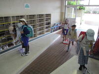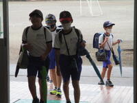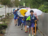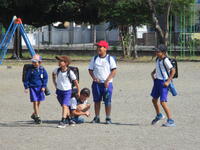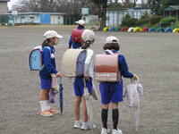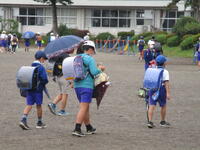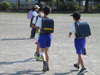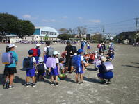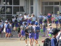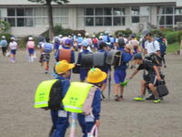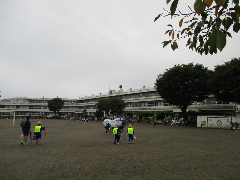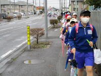 班長のさようならのあいさつの後で、全員で大きな声であいさつをして、東っ子たちは登下校班ごとに並んで下校して行きました。